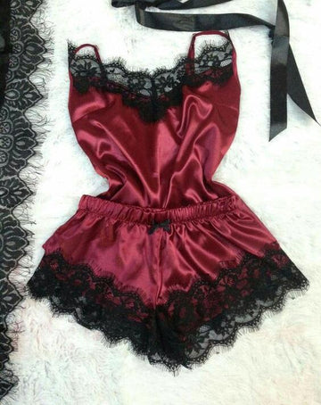 European and American foreign trade sex sensual pajama women's nightdress Amazon sexy home pajama lace two-piece set 01