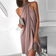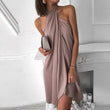Women Loose Sexy Halter Dress Casual Sleeveless Solid Irregular Dress Summer Fashion Beach Chest Wrap Strapless Backless Dresses